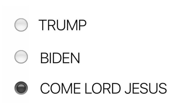 It recently struck me that one of the greatest benefits of the millennial kingdom is there will be no election for 1,000 years! Just Jesus as King. No primaries. No debates. No disputed votes. Just Jesus as King.