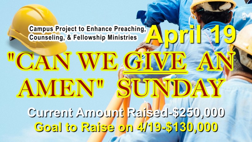 Well…we are just a few days away from asking God to help us raise the biggest one-chunk-in-one-service offering in our church’s history for our “Amen Project. Here are a few thoughts I shared this past Sunday AM with our core of men in prayerful preparation for what we are praying will fill our hard-hat offering: